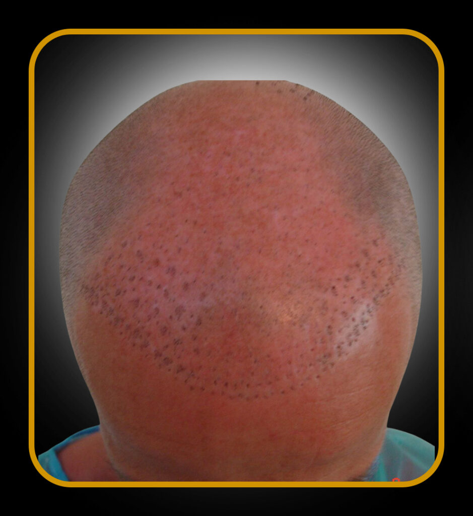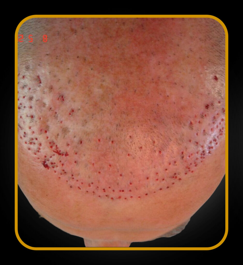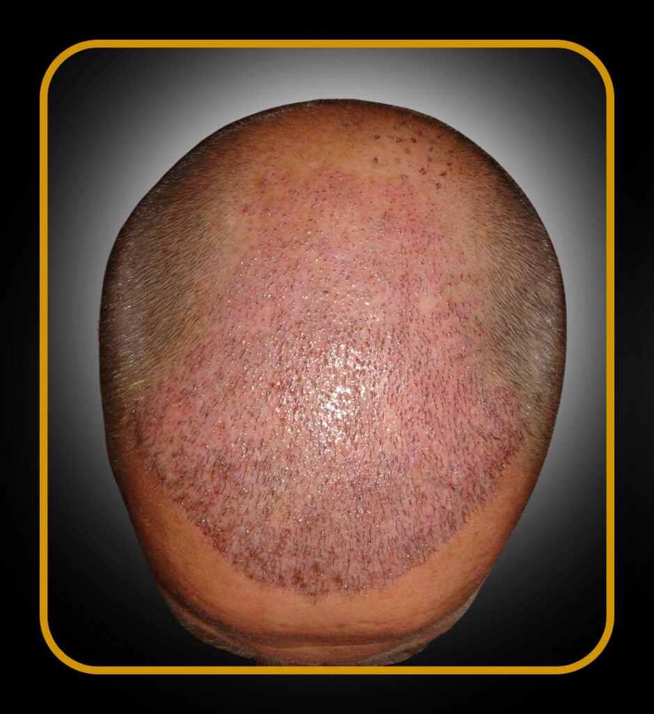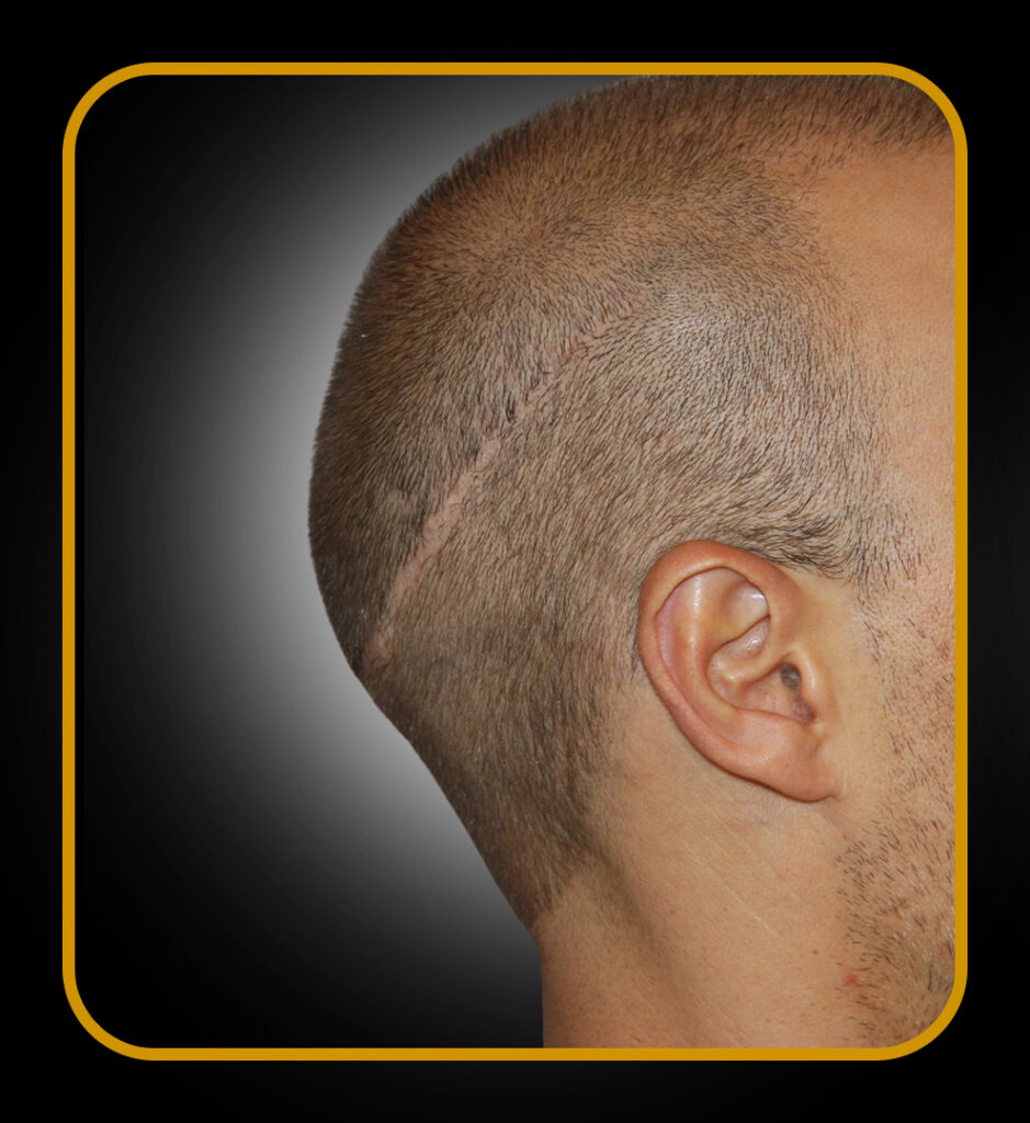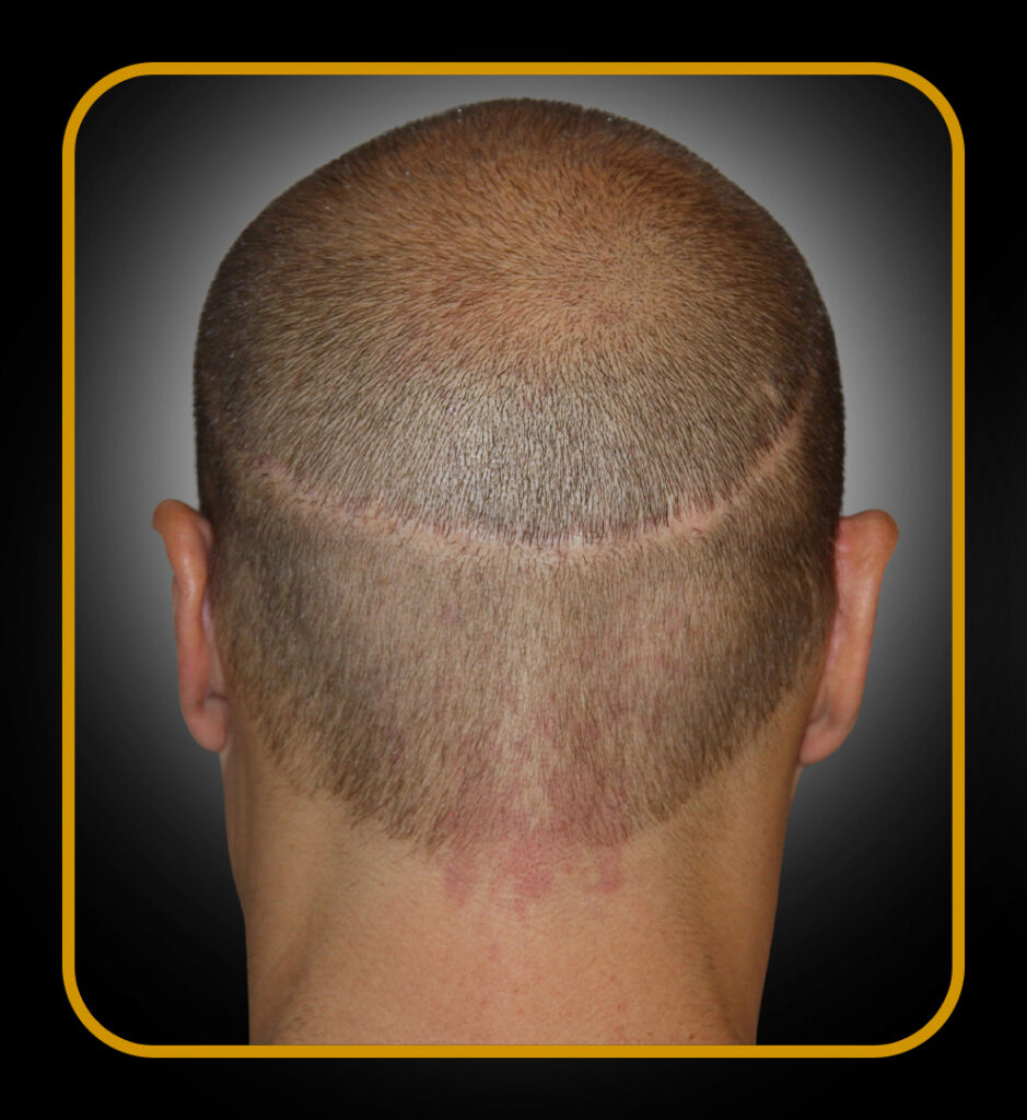 This young male patient enjoyed keeping his hair short—but doing so revealed a visible and unsightly strip scar from a previous transplant. It was a daily reminder of a decision he regretted.